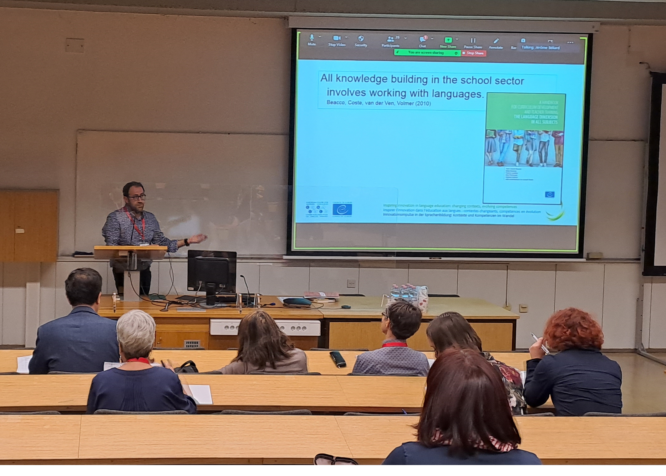 Jerome Béliard presented the ECML training and consultancy offer “Language of schooling in subject learning” on Monday and Tuesday, 26-27 September 2022, at the Final Project Conference “Languages Matter” at the Faculty of Education in Ljubljana and via Zoom.